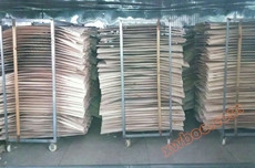 1. la madera entra en la Sala de secado. durante el proceso de apilamiento, el uso de una densidad razonable de tiras puede acelerar el secado de la madera. el proceso de secado razonable y el tiempo de descarga de humedad pueden hacer que el efecto del secado de la madera sea mejor.