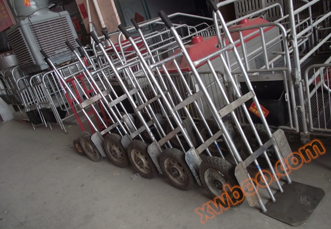 El equipo de cría de cerdos se agrava con un carrito especial ligero. Ruedas de pedal de motocicleta de 1,5 metros de largo, 63 metros de ancho, 45 de alto y 45 de paredes gruesas, ligeras y laboriosas al empujar, y no malas durante mucho tiempo.